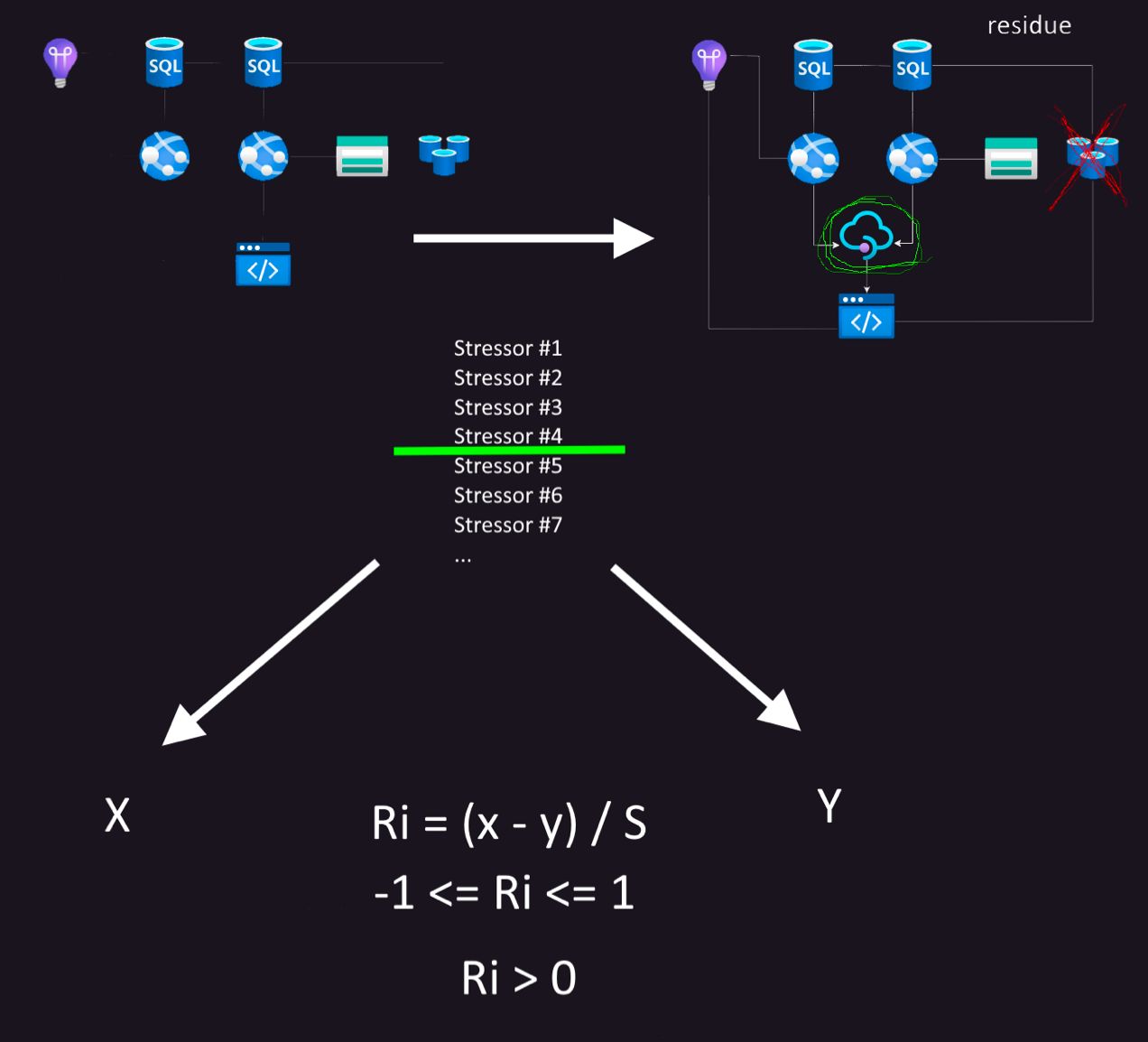 X = number of stressors survived by the new, residual architecture