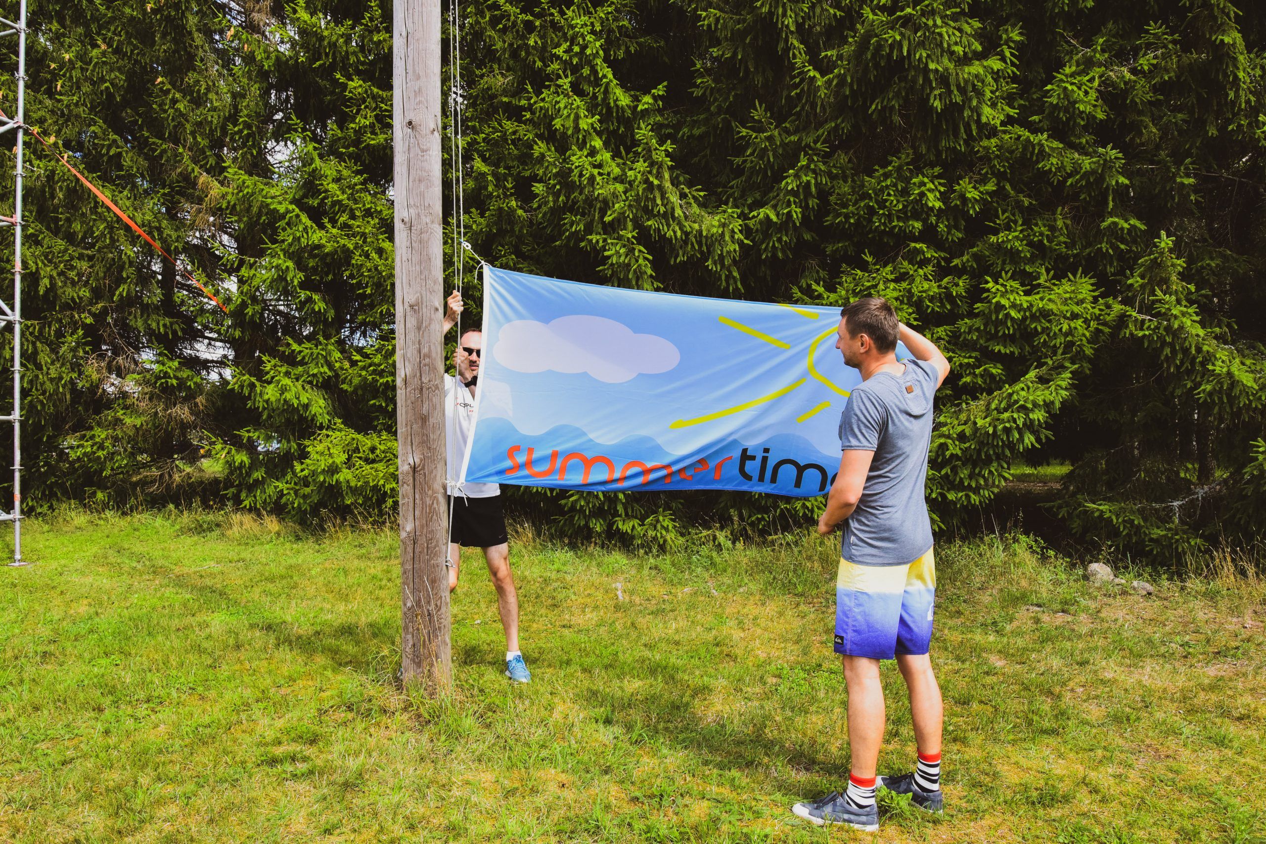 The Uptime Summer Days began with the traditional hoisting of the flag, this time by Margus, the head of Opus, and Michal, the head of Uptime’s Polish office. The hoisting of the flag and the opening remarks were followed by a challenging team exercise, where a raft that could keep two of the team members afloat had to be built with limited resources. During the ensuing boat race, the rafts built were put to the test. Surprisingly, none of them sunk!